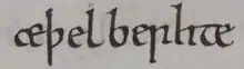 - Her Offa Myrcena cining het Æðelbrihte þet heafod ofslean (from an online version of the Chronicle.)