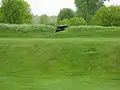Moat around Fort Lennox. On the left is the top of a chimney above a kitchen located in Fort Lennox.