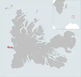 The Île de l'Ouest is a French island in the Kerguelen archipelago located west of Grande Terre in the extension of the Lakes peninsula, by the foothills of the Cook glacier. It has two bays:Noroît Bay to the north and Bretonne Bay to the south.