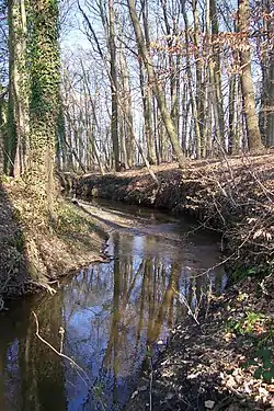 The Ölbach is one of the few outcrops of this region due to the topographic nature (gentle hills and flat land) of the Münsterland and is known for its numerous finds of belemnites. In its upper and middle reaches it exposes the gray clay layers belonging the Alb (Lower Cretaceous), and its many fossils.
