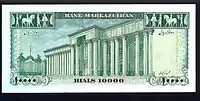 The ten thousand rial banknote is a denomination of Iranian currency that was considered its largest denomination for decades.[1] The banknote has had many different versions, featuring portraits of three Iranian rulers. Its latest version was published in 2017.