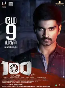 100 is a 2019 Indian Tamil-language action film written and directed by Sam Anton in his third directorial venture. The film features Atharvaa and Hansika Motwani in the lead roles, while Radha Ravi and Yogi Babu play supporting roles. The music was composed by Sam C. S., with editing done by Ruben and cinematography by Krishnan Vasant. The film began production during December 2017 and completed its shoot by August 2018.[1] It was released on 9 May 2019 to mixed to positive reviews from the audience as well as critics and become an above average success.[2]