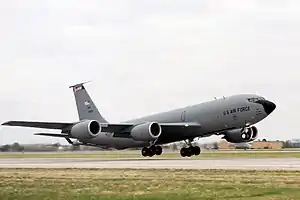 ![]() 126th Air Refueling Wing KC-135 59–1500 taking off to a forward deployed location in support of Joint Task Force Odyssey Dawn, 24 March 2011 | |