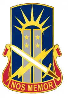![]() The 151st TIOG's distinctive unit insignia displays the Twin Towers with a banner that reads in Latin "Nos Memor" (We Remember)[1] | |
