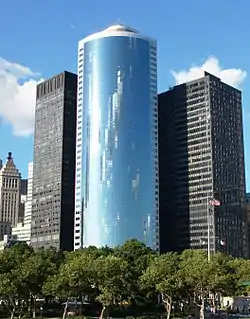 17 State Street is a 42-story office building located in the Financial District of Manhattan, overlooking State Street and Battery Park. It was designed by Roy Gee for Emery Roth and Sons for developers William Kaufman Organization, and it is most noted for its distinct curved glass facade.[4] The building has been owned by RFR Holding since 1999 when it was acquired from Savannah Teachers Properties Inc. for $120 million.[5]