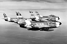It was not until August 1956 that the 182d received first-generation F-80C Shooting Star jets, replacing some of the last F-51H Mustangs in the USAF inventory. In 1957, the squadron was selected by the Air Defense Command to man a runway alert program on full 24-hour basis – with armed jet fighters ready to "scramble" at a moment's notice. This event brought the wing into the daily combat operational program of the USAF, placing them on "the end of the runway" alongside regular USAF-Air Defense Fighter Squadrons. The obsolescent F-80 day fighters were upgraded to the all-weather/day/night F-86D Sabre Interceptor by the end of the year. In June 1959 the squadron traded their F-86Ds for the upgraded F-86L Sabre Interceptor with uprated afterburning engines and new electronics.