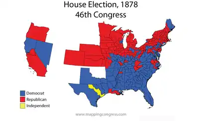 In the House, Democrats and Republicans both lost seats to the Greenback Party and a group of independent Democrats, with the Democrats retaining only a plurality.[3] Democrat Samuel J. Randall won re-election as Speaker of the House.