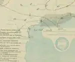 Observations from a ship and weather maps indicate that a tropical depression developed near the north coast of Isla de la Juventud on September 24.[31][1] Moving northward, the depression soon struck the Caribbean coast of modern-day Artemisa Province in Cuba.[1] Heavy rainfall and gusty winds were reported in the now defunct Santa Clara Province.[32] The depression emerged into the Gulf of Mexico and failed to intensify further before making landfall near Naples, Florida late on September 25. Moving northeastward, the cyclone emerged into the Atlantic Ocean and strengthened into a tropical storm around 12:00 UTC on September 26. About 24 hours later, the system peaked with maximum sustained winds of 60 mph (95 km/h). Thereafter, the storm began weakening.[1] However, on September 28, a ship observed a barometric pressure of 1,000 mbar (30 inHg), the lowest known in relation to the storm.[31] Around 00:00 UTC on September 29, the cyclone weakened to a tropical depression just west of Bermuda and dissipated shortly thereafter.[1]