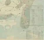 A ship first indicated the presence of this storm about 60 mi (95 km) northeast of Samana Cay in the Bahamas on August 28.[24][1] The cyclone moved west-northwestward and struck the southern end of Abaco Islands later that day. Early on August 9, the storm is estimated to have peaked with maximum sustained winds of 50 mph (85 km/h),[1] based on a minimum barometric pressure of 1,009 mbar (29.8 inHg) observed by a ship.[25] The cyclone made landfall around 09:00 UTC near modern-day Boca Raton, Florida. Moving inland, the system weakened to a tropical depression early on August 30 while just to the west of Lake Okeechobee, where it began curving northwestward. Around midday, the cyclone turned northeastward. Late on August 30, the storm reemerged into the Atlantic Ocean and restrengthened into a tropical storm early the following day. The reintensification was short-lived, with the cyclone weakening to a tropical depression and dissipating about 120 mi (190 km) southeast of Charleston, South Carolina. [1]