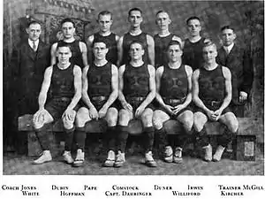 The 1912–13 season saw yet another head coach arrive in Champaign-Urbana to work with the Illinois Fighting Illini men's basketball team. Ralph Jones left an impressive legacy behind in West Lafayette, Indiana where he was head coach of Purdue for three years. During his tenure at Purdue, Jones compiled an impressive record of 32 wins with only 9 losses resulting in two conference championships. Jones was credited by some with originating the fast break in basketball.[1] After leading the Fighting Illini to two additional conference championships and one national championship, Jones left to coach at Lake Forest Academy. In addition to coaching basketball, Jones was head coach of the Chicago Bears from 1930–33, where, among other achievements, he was credited with the revival of the T-formation and the use of a man in motion to throw off the defense.[2]