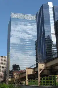 191 North Wacker is a 516 ft (157m) tall skyscraper in Chicago, Illinois. It was constructed from 2000 to 2002 and has 37 floors, 14 elevators, and 737,759 square feet of floor space. Kohn Pedersen Fox Associates designed the building, which is the 77th tallest in Chicago. Tenants include LSC Communications.
