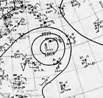 The first hurricane of the season was first noted in the central Atlantic Ocean on August 21. Slowly intensifying, the system initially moved towards the west.[2] On August 22, a steamship in the vicinity sustained some structural damage.[4] After attaining hurricane strength on August 24, the system turned northwestward, and reached Category 3 intensity on August 25 with maximum sustained winds of 125 mph (205 km/h) as it grazed Bermuda.[2] Recurving to the northeast, a French cruise liner encountered the hurricane while it was a Category 2 hurricane. A large wave struck the ship, shattering glass on the vessel and injuring 40 passengers.[4] Although still a Category 2 hurricane, the system became extratropical shortly after on August 28.[2] The extratropical storm was tracked due east towards the Azores for a few days while gradually weakening before abruptly turning to the north and dissipating.[4]