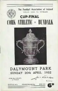 The 1952 FAI Cup Final was the final match of the 1951–52 FAI Cup, a knock-out association football competition contested annually by clubs affiliated with the Football Association of Ireland. It took place on Sunday 20 April 1952 at Dalymount Park in Dublin, and was contested by Cork Athletic and Dundalk. The match finished 1–1, sending the final to a replay the following Wednesday 23 April 1952. Dundalk won the replay 3–0 to win their third FAI Cup.