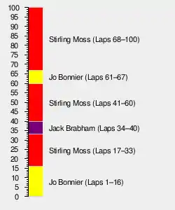 | 1 | 28 | Lotus-Climax | 100 | 2:53:45.5 | 1 | 8 | |