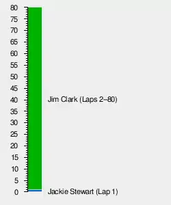 Clark broke many records during the weekend, such as leading the most Grands Prix (43), having the most laps led (1,943), having the most perfect weekends (11), achieving the most pole positions (33) and finally achieving 25 race wins, beating Juan Manuel Fangio's 11-year-old record.
