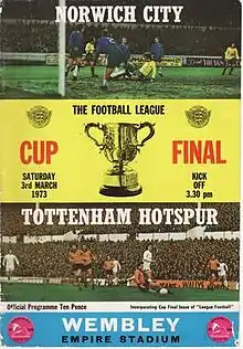 The 1973 Football League Cup Final was held on 3 March 1973 and was won by Tottenham Hotspur. Spurs beat Norwich City 1–0 at the old Wembley.