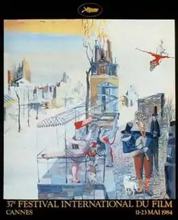 ![]() Official poster of the 37th Cannes Film Festival, adapted from an original film set by Alexandre Trauner.[1] | |