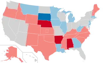 ![]() Results of the elections (excluding Oregon's Senate special election): Democratic gain Democratic hold Republican gain Republican hold No election | ||||||||||||||||||||||||||||||||||||||||