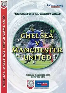 The 2000 FA Charity Shield (also known as The One 2 One FA Charity Shield for sponsorship reasons) was the 78th FA Charity Shield, an annual football match organised by The Football Association, and contested by the winners of the previous season's Premier League and FA Cup competitions. It was played at the original Wembley Stadium, London, on 13 August 2000 between Chelsea, the winners of the 1999–2000 FA Cup, and Manchester United, who had won the 1999–2000 FA Premier League. Watched by a crowd of 65,148, Chelsea won the match 2–0.
