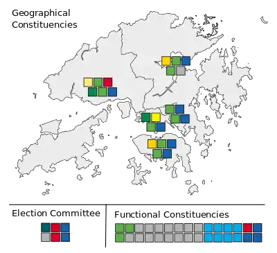 | Parties and allegiances | Geographical constituencies | Functional constituencies | ECC seats |