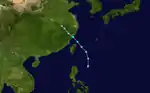 Tropical Storm Linfa developed as a tropical depression just off the western coast of Luzon on May 25.[13] The disturbance quickly intensified to reach tropical storm intensity a few hours after cyclogenesis. However, intensification leveled off as Linfa executed a small clockwise loop before a subsequent landfall on Luzon on May 27.[12] Due to land interaction the storm temporarily weakened and decoupled before reforming in the Philippine Sea.[1] Afterwards Linfa began reintensifying and reached its peak intensity on May 29 with maximum sustained winds of 100 km/h (65 mph) and a barometric pressure of 980 mbar (hPa; 28.94 inHg).[13] Following its peak the tropical storm began to deteriorate and transitioned into an extratropical cyclone on May 30; these extratropical remnants continued to track northward through Japan before dissipating in the Sea of Okhotsk on June 4.[12]