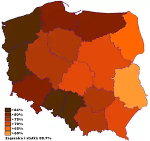 A referendum on joining the European Union was held in Poland on 7 and 8 June 2003.[1] The proposal was approved by 77.6% of voters. Poland subsequently joined the European Union that year following the ratification of the Treaty of Accession 2003. The country's first European Parliament elections were held in 2004.