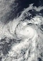 On July 16, a tropical disturbance formed far to the south of the Baja California Peninsula and quickly increased in convective activity and organization, becoming a tropical depression. The system continued to organize and was designated as a tropical storm the next day. On July 18, Daniel attained hurricane status, and two days later underwent rapid intensification; it reached major hurricane status and was later upgraded further to Category 4 status on the Saffir-Simpson Hurricane Scale. Its peak intensity was 150 mph (240 km/h).[34] The hurricane underwent eyewall replacement cycles, which are internal mechanisms that occur in most intense hurricanes. Daniel later became an annular hurricane, which allowed it to maintain Category 4 status for longer than it otherwise would have.[35]
