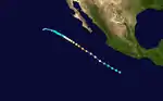 Three storms developed in October, including Hurricane Paul.[7] Tropical activity within the basin in November 2006 was the most active on record, based on the ACE Index. Three tropical cyclones formed, of which two became tropical storms; only one other season on record at the time, 1961, produced two tropical storms in the month of November.[10] In addition, Mexico was struck by four tropical cyclones in 2006, none on the Atlantic coast and all along the Pacific coast.[11] One hit Baja California Peninsula while the others made landfall on the mainland.[12]