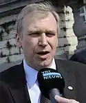 Of the Flemish parties, the alliance of Christian Democratic and Flemish party (CD&V) and the New-Flemish Alliance (N-VA) received an increased share of the vote from the previous election, held in 2003. The CD&V/N-VA list was headed by Yves Leterme, and became the largest political formation in Belgium, thus leading the coalition talks for a new government.[1] Flemish Interest (Vlaams Belang) received more votes than in the previous election, but lost one seat. Green! was able to return to parliament and newcomers List Dedecker (Lijst Dedecker) surprised most by immediately grabbing six seats, including one in the Senate. Prime minister Guy Verhofstadt's "purple coalition," consisting of his Open Flemish Liberals and Democrats (Open VLD) alliance list and Socialist Party – Different (SP.A/SPIRIT), was punished in the election, with the SP.A/SPIRIT alliance losing somewhat more than Verhofstadt's Open VLD alliance. The day after the election, Verhofstadt handed in the resignation of his government to King Albert II.[2][3] SP.A leader Johan Vande Lanotte resigned from his leadership position as well that day.[4]