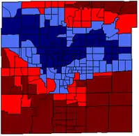 ![]() Voting by party by neighborhood. The darkest blue shade represents more than 60% of votes were for Peterson, the lighter blue shade represents more than 50% for Peterson. The darkest red shade represents more than 60% of votes were for Ballard, the lighter red shade represents more than 50% for Ballard. | |||||||||||||||||