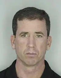 After the initial reports, Donaghy stayed at his home, before moving to a secure location to avoid the media scrutiny.[10] He surrendered on August 15, 2007, and pleaded guilty to two felony charges of conspiracy.[11] He told judges that he had used coded language to tip others about players' physical condition and player/referee relations, and he specifically admitted to passing information about two games during the 2006–07 season. In total, he received $30,000 to pass inside information to the bookies.[12] Donaghy also admitted that he had a severe gambling addiction, and was on medication to address it.[13] He was released on a $250,000 bond.[11]