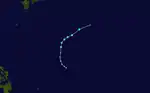 On June 10, the JTWC began monitoring an area of disturbed weather that was situated about 140 km (87 mi) southeast of Palau.[45] The disturbance had an elongated low-level circulation, with deep convection centered along the southwestern portion of the system.[45] Over the next couple of days, the disturbance gradually developed with the JMA declaring the system as a tropical depression early on June 14 whilst the JTWC issued a TCFA.[46][47] However the TCFA was cancelled later that day due to the convection dissipating, whilst the JMA downgraded the depression to an area of low pressure.[48][49] Over the next two days, the system moved across Luzon and began to regenerate.[50] Early on June 17, a second TCFA was released by the JTWC whilst the JMA reported that the system had re-intensified into a tropical depression.[51][52] Later that day, the JTWC designated the system as Tropical Depression 03W whilst the storm was situated about 705 km (438 mi) south-southwest of Kaohsiung, Taiwan.[53] Following further development of the depression, the JTWC upgraded it to a tropical storm late on June 17.[54] The JMA then followed suit early the next morning assigning the name Linfa to the storm.[55] Throughout the rest of the day limited poleward outflow prevented linfa from intensifying.[56] During June 19, Linfa intensified further and became a severe tropical storm with an eye feature starting to appear on microwave imagery.[57][58] After interacting with a nearby upper-level low, outflow significantly improved later that day, fueling further strengthening, before the next day the JTWC upgraded Linfa to a typhoon as it reached its peak windspeeds of 140 km/h (85 mph) 110 km/h (70 mph 10-minute winds).[59][60][61] Later that day convection near the center of the circulation to decrease with the eye no longer visible. Upper-level wind shear rapidly increased, preventing re-intensification of the cyclone.[62] Linfa then began to interact with land and was downgraded to a tropical storm by the JTWC on June 21 and then during that afternoon the storm made landfall on the southern Chinese provence of Fujian.[63] Deep convection then rapidly dissipated with both the JMA and the JTWC downgrading Linfa to a Tropical depression by early on June 22, as the storm moved away from the Chinese coastline.[64][65] The system later dissipated just offshore with a circulation was no longer evident on satellite imagery.[66]
