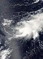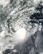 Tropical Depression Auring formed as a tropical disturbance late on December 30, 2008, to the southeast of Manila in the Philippines.[14] Over the next few days the disturbance gradually developed before early on January 3, both PAGASA and the JMA, reported that the disturbance had intensified into the first tropical depression of the season with PAGASA assigning the name Auring to the depression.[14][15][16][17] As the depression was moving into a high level of vertical wind shear, it did not develop any further and late on January 5 as the baroclinic zone approached Auring, it was downgraded to a low-pressure area by PAGASA before the JMA followed suit the next day as it was declared as dissipated by the JTWC.[18][19][20][21]