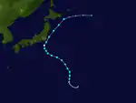 During June, the GCACIC reported that the total number of tropical cyclones had decreased from 31 to 30, and that the total number of typhoons had increased to 19, while there was no change to the number of tropical storms predicted to occur during the season.[8] They also predicted that 3 tropical cyclones would make landfall on Southern China between July and December compared to an average of 4.[8] On June 30, the Taiwan Central Weather Bureau predicted that the season would see activity near its average of 26.6, and predicted that between 24 - 27 tropical storms would occur over the Western Pacific.[9] The Central Weather Bureau also predicted that of the 24-27 tropical storms forecast 3-5 of them would affect Taiwan.[9][12] In their July and August forecasts TSR upped their prediction for the amount of intense typhoons by one to ten and eleven respectively, whilst predicting the same amount of tropical storms and typhoons.[3][4] In July and August they also predicted that the season would now see activity about 20% above normal.[3][4] After their initial prediction was surpassed by Tropical Depression Tino forming, PAGASA announced that they expecting two or three more cyclones to affect the Philippines, before the end of the year.[13]