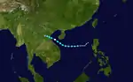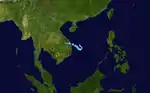 Early on June 2, the JMA reported that an area of low pressure had formed over Hainan island.[38] During the next 36 hours the low pressure area moved to the east before late on June 3, the JMA reported that the system had intensified into a tropical depression whilst located about 600 km (370 mi) to the northwest of Manila, Philippines.[39][40] Over the next couple of days, the depression moved to the northwest before the JMA stopped monitoring the system early on June 6.[41][42]