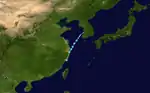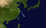 Late on July 26 the JMA reported that a tropical depression had formed off the coast of Zhejiang province, within a monsoonal trough about 400 km (250 mi) to the south of Shanghai China. During the next day the depression remained offshore and moved towards the north passing about 120 km (75 mi) to the southeast of Shanghai before early on July 28 weakening into an area of low pressure. During that day the area of low pressure kept moving north before dissipating later that day as it affected South Korea.