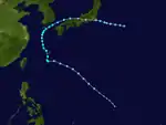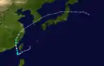 Early on July 24, the JMA reported that a tropical depression had formed about 50 km (31 mi) to the east of Taipei, Taiwan.[50] The depression was in an area of moderate vertical windshear and had a broad low level circulation.[51] Later the next day on July 25, the depression made landfall in Yilan County before the JMA stopped monitoring the depression as it dissipated near the coast of Fujian province.[52][53][54]