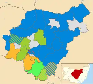In the 2011 United Kingdom local elections, the Conservative Party held onto the Council for a third term and even increased their majority. The Liberal Democrats lost four seats but remained in second place while the Green Party and the Labour Party each gained a seat, which is Labour's only seat on the Council.
