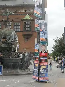 A central theme in the campaign was the claim of benefit tourism as a threat to the Danish welfare state, a position the Danish People's Party fronted and which was partly supported by Venstre, the Conservatives and the Social Democrats.[8] The Social Liberal Party took the most positive position towards free movement of people inside the EU and was supported by Danish businesses.[9]