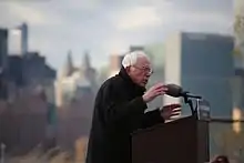 On May 26, 2015, Sanders officially announced his run as a presidential candidate for the Democratic nomination, after an informal announcement on April 30 and speculation since early 2014.[66][67][68] Sanders had previously served as Mayor of Burlington, Vermont (1981–89), Vermont's sole U.S. Representative (1991–2007) and Vermont's junior Senator (2007–present).[69] He emerged as the biggest rival to Hillary Clinton in the Democratic primaries, backed by a strong grassroots campaign and a social media following.[70] In November 2014, Jim Webb, a former U.S. Senator who had once served as the U.S. Secretary of the Navy during the Reagan administration, announced the formation of an exploratory committee in preparation for a possible run for the Democratic presidential nomination.[71] This made Webb the first major potential candidate to take a formal action toward seeking the party's 2016 nomination.[71] Martin O'Malley, former Governor of Maryland as well as a former Mayor of Baltimore, made formal steps toward a campaign for the party's nomination in January 2015 with the hiring and retaining of personnel who had served the previous year as political operatives in Iowa – the first presidential nominating state in the primary elections cycle – as staff for his political action committee (PAC). O'Malley had started the "O’ Say Can You See" PAC in 2012 which had, prior to 2015, functioned primarily as fundraising vehicles for various Democratic candidates, as well as for two 2014 ballot measures in Maryland.[72] With the 2015 staffing moves, the PAC ostensibly became a vehicle for O'Malley – who had for several months openly contemplated a presidential bid – to lay the groundwork for a potential campaign for the party's presidential nomination.[73] In August 2015, Lawrence Lessig unexpectedly announced his intention to enter the race, promising to run if his exploratory committee raised $1 million by Labor Day.[74][75] After accomplishing this, Lessig formally announced his campaign.[76] He described his candidacy as a referendum on electoral reform legislation, prioritizing a single issue: the Citizen Equality Act of 2017, a proposal that couples campaign finance reform with other laws aimed at curbing gerrymandering and ensuring voting access.[77][78]
