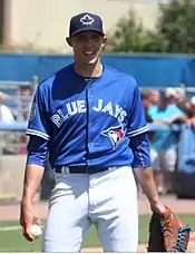 On March 23, Marcus Stroman was named the Opening Day starter for the Blue Jays.[57] The competition for fifth starter ended on March 28, when John Gibbons announced that Aaron Sanchez had earned the final rotation spot.[58] Steve Delabar, who had been an All-Star for the Blue Jays in 2013, was released on March 29, along with Randy Choate.[59] The final roles left to be determined were the fourth outfielder, closer, and remainder of the bullpen pitchers. On March 30, John Gibbons announced that Ezequiel Carrera would be the fourth outfielder, Roberto Osuna would begin the season in the closer's role, and Arnold León, Joe Biagini, and Ryan Tepera would round out the bullpen positions. Gibbons also announced that Marco Estrada and Aaron Loup would open the season on the disabled list.[60] To close spring training, the Blue Jays returned to Montreal's Olympic Stadium for a two-game series against the Red Sox.