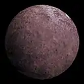 The surface of Gonggong has an albedo (reflectivity) of 0.14.[8] The surface composition and spectrum of Gonggong is expected to be similar to that of Quaoar, as both objects are red in color and display signs of water ice and possibly methane in their spectra.[31][32] The reflectance spectrum of Gonggong was first measured in 2011 at near-infrared wavelengths, with the Folded port InfraRed Echellette (FIRE) spectrograph on the Magellan Baade Telescope at the Las Campanas Observatory in Chile.[33] Gonggong's spectrum exhibits a strong red spectral slope along with broad absorption bands at wavelengths of 1.5 μm and 2 μm, meaning that Gonggong reflects more light at these wavelengths.[33] Additional photometric measurements from the Hubble Space Telescope's Wide Field Camera 3 instrument display similar absorption bands at 1.5 μm,[33] which are characteristic features of water ice, a substance often found on large Kuiper belt objects.[34] The presence of water ice on the surface of Gonggong implies a brief period of cryovolcanism in the distant past, when water erupted from its interior, deposited onto its surface, and subsequently froze.[35]