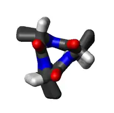 The amino acids in a 310-helix are arranged in a right-handed helical structure. Each amino acid corresponds to a 120° turn in the helix (i.e., the helix has three residues per turn), and a translation of 2.0 Å (0.20 nm) along the helical axis, and has 10 atoms in the ring formed by making the hydrogen bond.[17]:39 Most importantly, the N-H group of an amino acid forms a hydrogen bond with the C=O group of the amino acid three residues earlier; this repeated i + 3 → i hydrogen bonding defines a 310-helix. Similar structures include the α-helix (i + 4 → i hydrogen bonding) and the π-helix i + 5 → i hydrogen bonding.[17]:44–45[19]