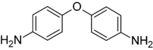 Other applications of 4,4’-oxydianiline include the production of poly(amide)imide resins (which are used in the manufacture of heat-resistant wire enamels and coatings), as an intermediate in the manufacture of epoxy resins and adhesives, and in the production of aromatic polyether imides.[1]