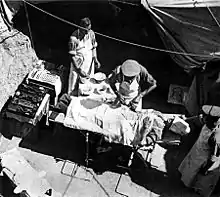 On the second day of battle, 5 August 1916, the 42nd Division along with the 52nd (Lowland) Division, which had fought the previous day from their entrenched position, were ordered to move out to support the Australian Light Horse and New Zealand Mounted Rifles Brigades in a pursuit of the enemy.[27][28] The 42nd Division was not prepared for the conditions they found in the Sinai desert. They had not been trained to operate in heavy sand in mid summer heat, and with insufficient water, extreme distress and tragedy followed. The mounted troops alone, were unable to stop the enemy making a disciplined withdrawal to water at Katia and to fall back in good order, the following day.[29][30][31][32]