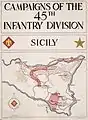 The division was subsequently assigned a lead role in the amphibious assault on Sicily, coming ashore on 10 July.[29][30] Landing near Scoglitti, the southernmost U.S. objective on the island, the division advanced north on the U.S. force's eastern flank.[31] After initially encountering resistance from armor of the Herman Goering Division, the division advanced, supported by paratroopers of the 505th Parachute Regimental Combat Team, part of the 82nd Airborne Division, who landed inland on 11 July.[32] The paratroopers, conducting their first combat jump of the war, then set up to protect the 45th's flank against German counterattack, but without weapons to counter heavy armor, the paratroopers had to rely on support from the 2nd Armored Division to repulse the German Tiger I tanks.[32] As the division advanced towards its main objective to capture the airfields at Biscari, and Comiso, German forces pushed back.[33] For most of the first two weeks while the division moved slowly north, it encountered only light resistance from Italian forces fighting delaying actions.[34] Italian and German forces resisted fiercely at Motta Hill on 26 July, however, and for four days the 45th Division was held up there.[35] After this, the division was allocated to drive towards Messina, being ordered by the Seventh Army commander to cover the distance as quickly as possible.[36] The 45th Division spent a few days in that city, but on 1 August, the division was withdrawn from the front line for rest and rear-guard patrol duty,[26] after which the division was assigned to Major General Ernest J. Dawley's VI Corps, part of the U.S. Fifth Army, under Lieutenant General Mark W. Clark, in preparation for the invasion of mainland Italy.[37]