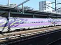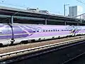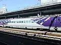 The 500 series (500系, 500-kei) is a Shinkansen high-speed train type operated by West Japan Railway Company (JR-West) on the Tōkaidō Shinkansen and San'yō Shinkansen lines in Japan since 1997.[3] They were designed to be capable of 320 km/h (200 mph) but operated at 300 km/h (185 mph), until they were finally retired from the primary Nozomi service in 2010. The trainsets were then refurbished and downgraded to the all-stations Kodama service between Shin-Ōsaka and Hakata.