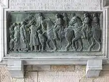 The regiment was originally formed in 1689 by Brigadier James Wynne as James Wynne's Regiment of Dragoons.[1] It fought at the Battle of the Boyne in July 1690[2] and at the Battle of Aughrim later that month under King William III.[3] Renamed the Royal Dragoons of Ireland in 1704,[1] it went on to fight under the Duke of Marlborough at the Battle of Blenheim in August 1704 during the War of the Spanish Succession.[4] At the Battle of Ramillies in May 1706 the regiment helped capture the entire French "Regiment du Roi",[5] after which it fought at the Battle of Oudenarde in July 1708[6] and at the Battle of Malplaquet in September 1709.[7] In 1751, it was retitled 5th Regiment of Dragoons and in 1756 it became the 5th (or Royal Irish) Regiment of Dragoons.[1] As such, it served in Ireland and had the honour of leading the charge against the rebels at the Battle of Enniscorthy in May 1798 during the Irish Rebellion of 1798.[8] However, its troops were accused of treachery: their accusers claimed their ranks had been infiltrated by rebels.[9] Following an investigation, it was found that a single individual, James M'Nassar, had infiltrated the regiment: he was ordered to be "transported beyond the seas".[10] According to Continental Magazine: