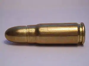 The 7.62×25mm Tokarev cartridge (designated as the 7.62 × 25 Tokarev by the C.I.P.[5]) is a Russian rimless bottlenecked pistol cartridge widely used in former Soviet states and in China, among other countries. The cartridge has since been replaced in most capacities by the 9×18mm Makarov in Russian service.[6]