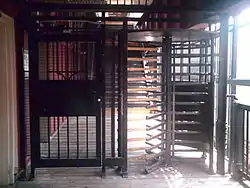 The station's other fare control area towards the north end is un-staffed. A single staircase from each platform goes down to a landing around a now-closed station house. A single full height turnstile provides access to/from the station before another staircase goes down to either southern corners of New Utrecht Avenue and 77th Street.[9]